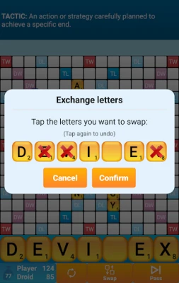 Choose the skill level of the computer (from beginner to expert), pick a word list (English word lists include the latest NASPA Word List 2020), and use your strategy skills and vocabulary to try and defeat the Droid.