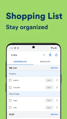 Save weekly ad deals and grocery coupons to your shopping list.