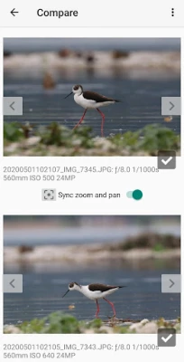 Trying to find the best out of a series of 15 photos shot in sequence? This app shows two photos on the screen in order to compare them. Zooming and panning is synchronized, so focus and composition can easily be compared.