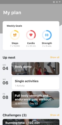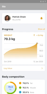 Keep your workouts and progress and stand in direct contact with your personal trainer:.