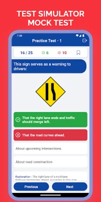 * Extensive Question Bank: The app contains a vast database of practice questions meticulously designed to cover all aspects of the test. Our app contains questions on topics such as road signs, traffic laws, safe driving practices, and more.