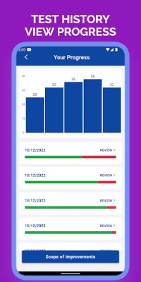 * Progress Tracking: Monitor your progress effortlessly. The app keeps track of your performance, highlighting areas where you can improve and suggesting those that need improvement.