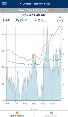 • Graphs that display the history of pest-specific degree days for up to 3 months.