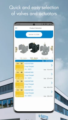 SAUTER ValveDim is the practical SAUTER tool for finding the right valves and actuators for your application. Browse effortlessly through the complete SAUTER product range while on the move – even offline!